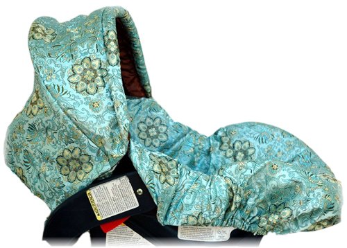 Baby Bella Maya Infant Car Seat Cover in Couture Ocean Mist Blue with Trim Feature