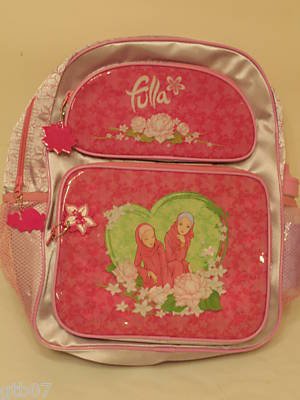 - Brand new Fulla 15" purple and pink backpack school bookbag from Newboy. It has six 3 different compartments. It measures 15" inches (38 cm) tall, 12" inches (30 cm) wide and 5.5" inches (14 cm) deep.